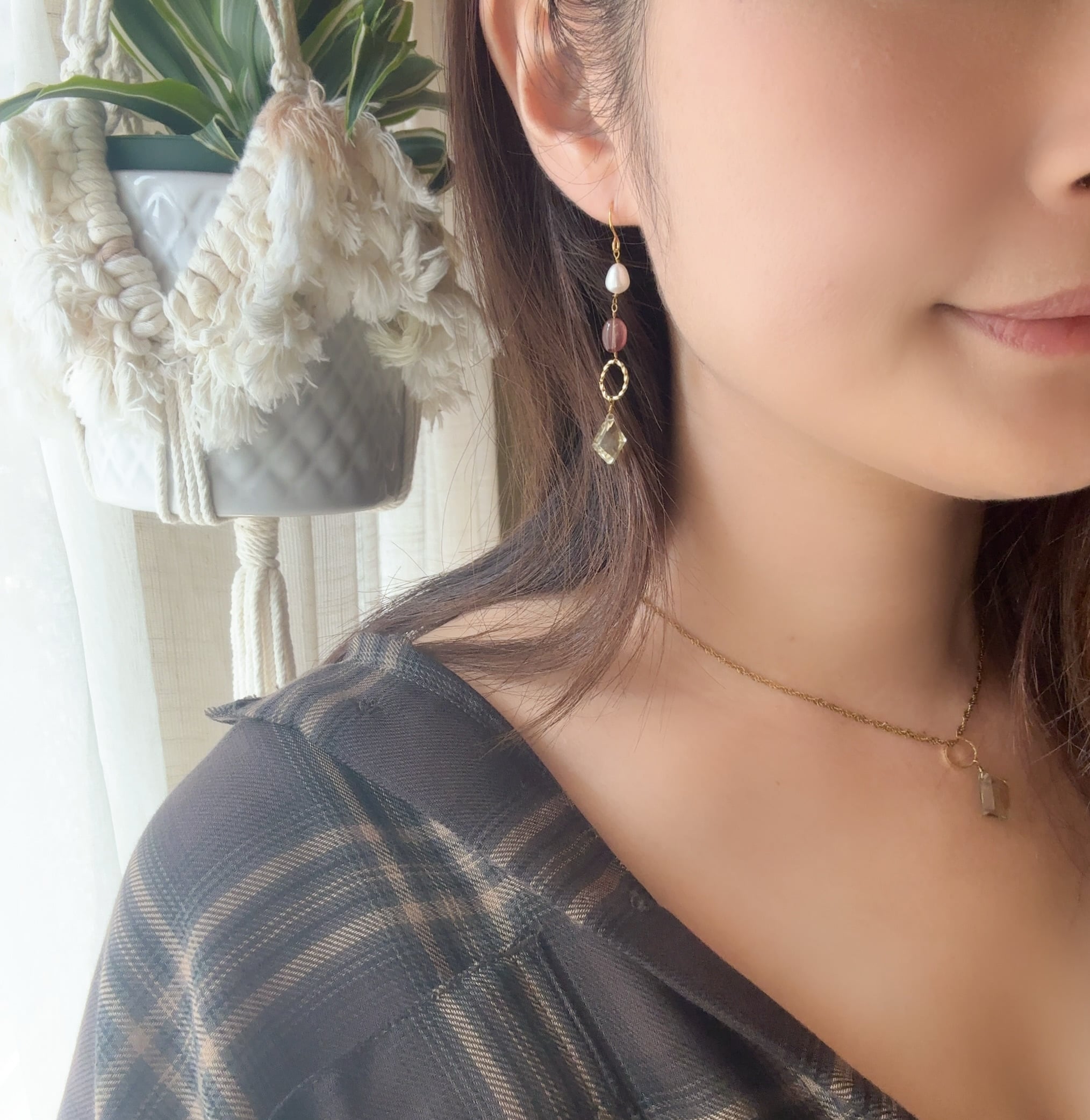 アンデシンとビアクォーツを使って、華やかさと個性を併せ持つアクセサリーをデザインしました。