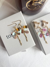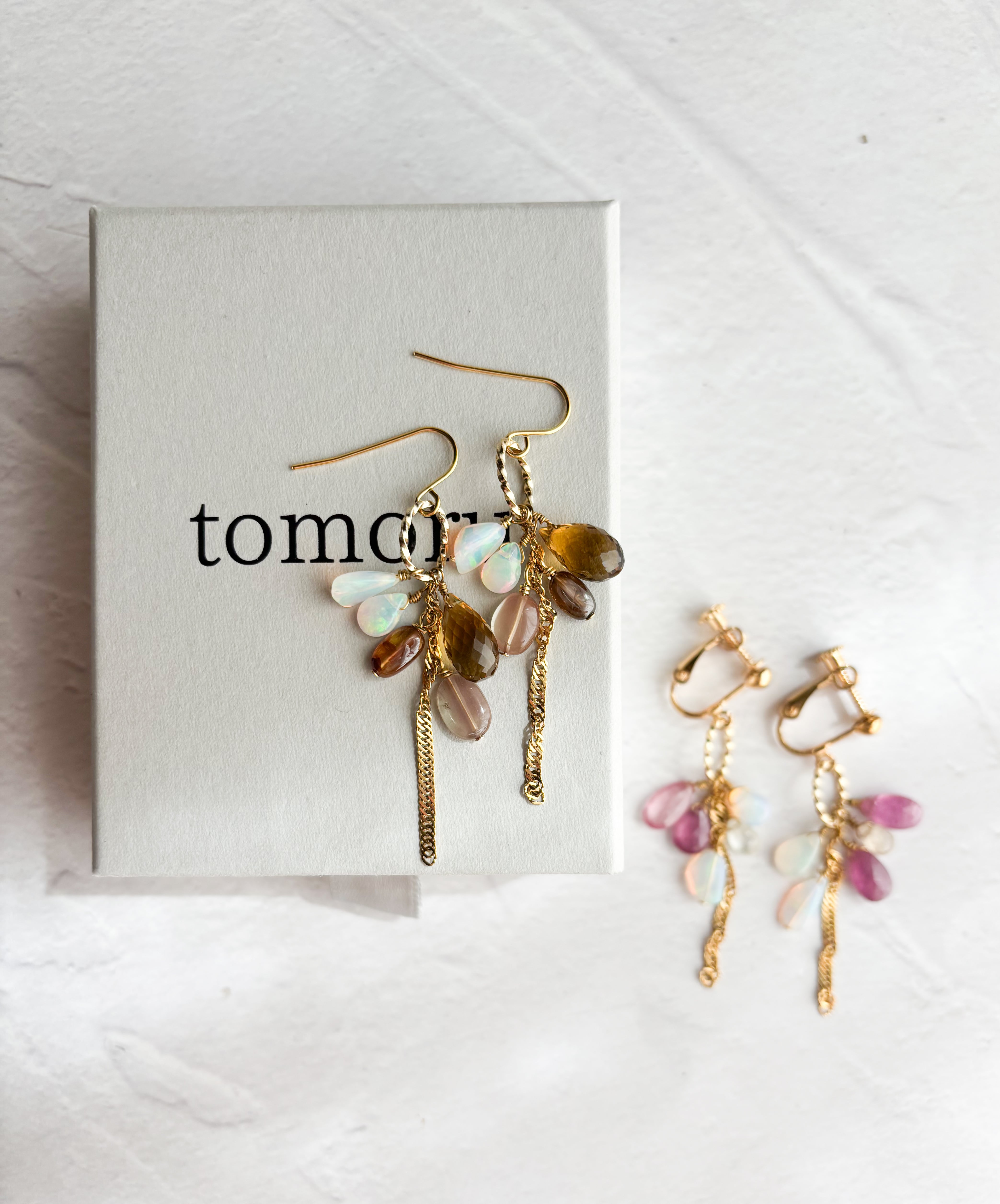 ビアクォーツとオパール、BLOWN×BLUEの配色が秋らしくお洒落に耳元を華やかにします。