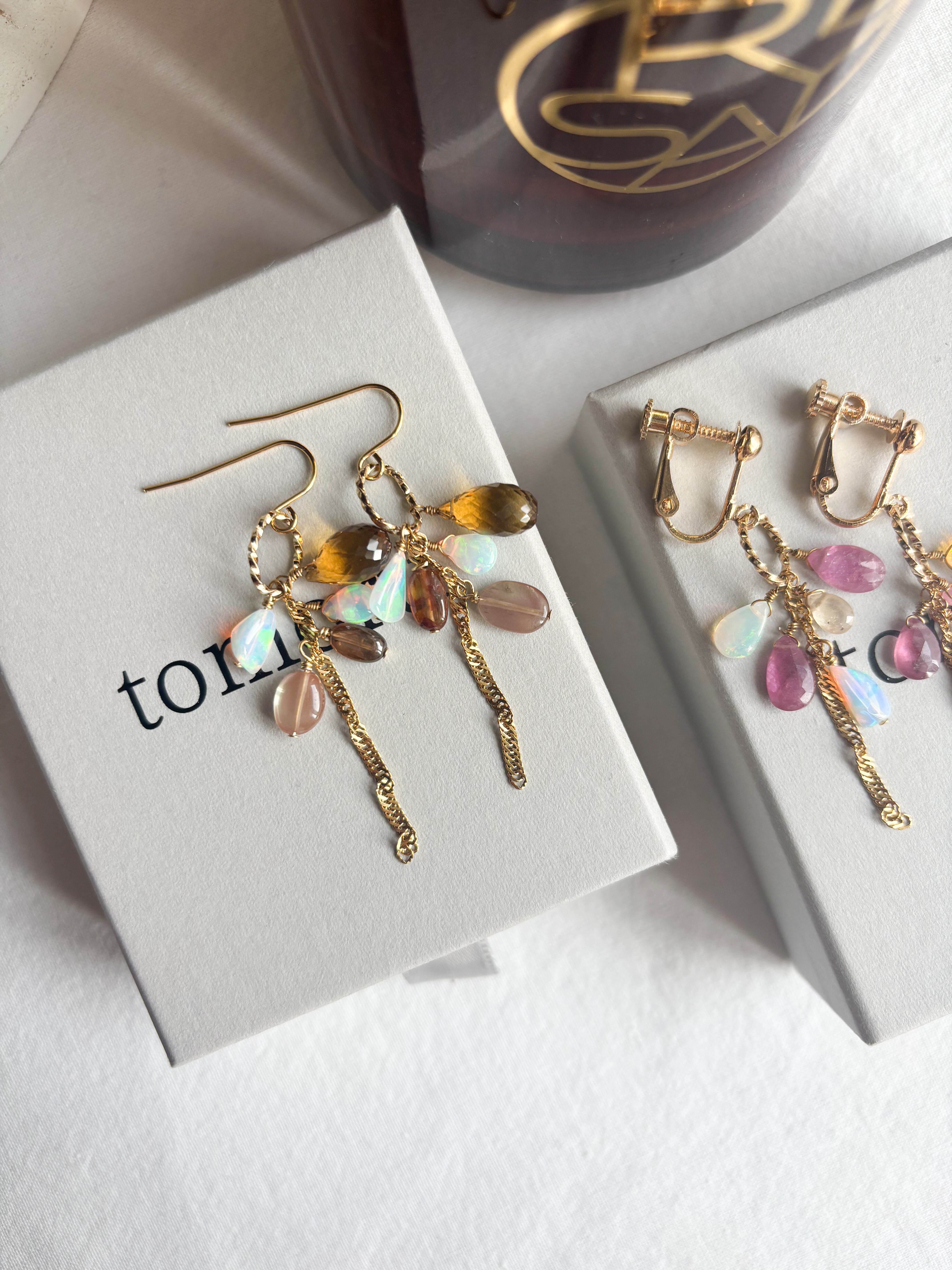 【新作】ビアクォーツ×オパールのチェーン揺れるピアスイヤリング
