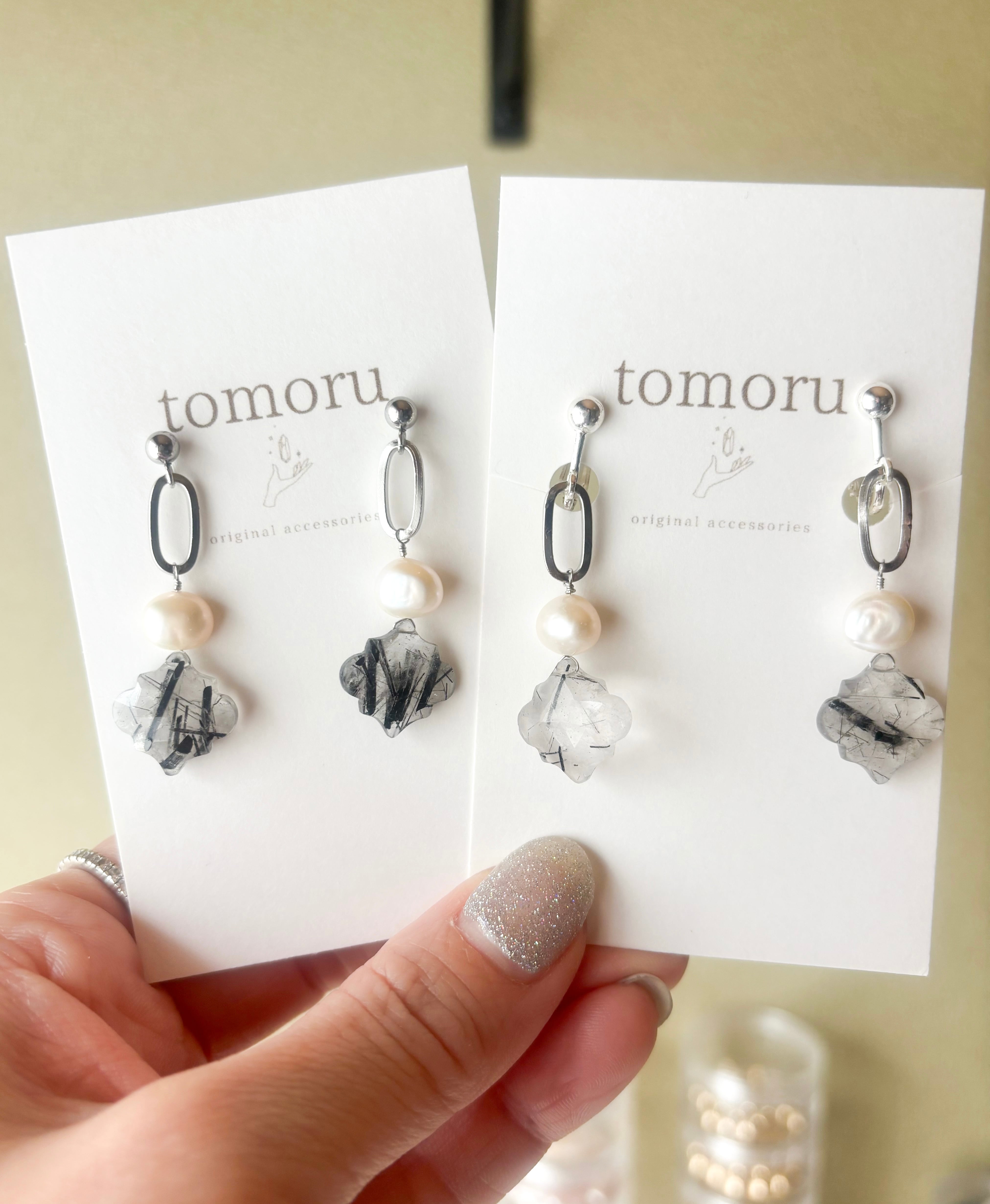 【NEW】ブラックトルマリン×淡水パールピアスイヤリング