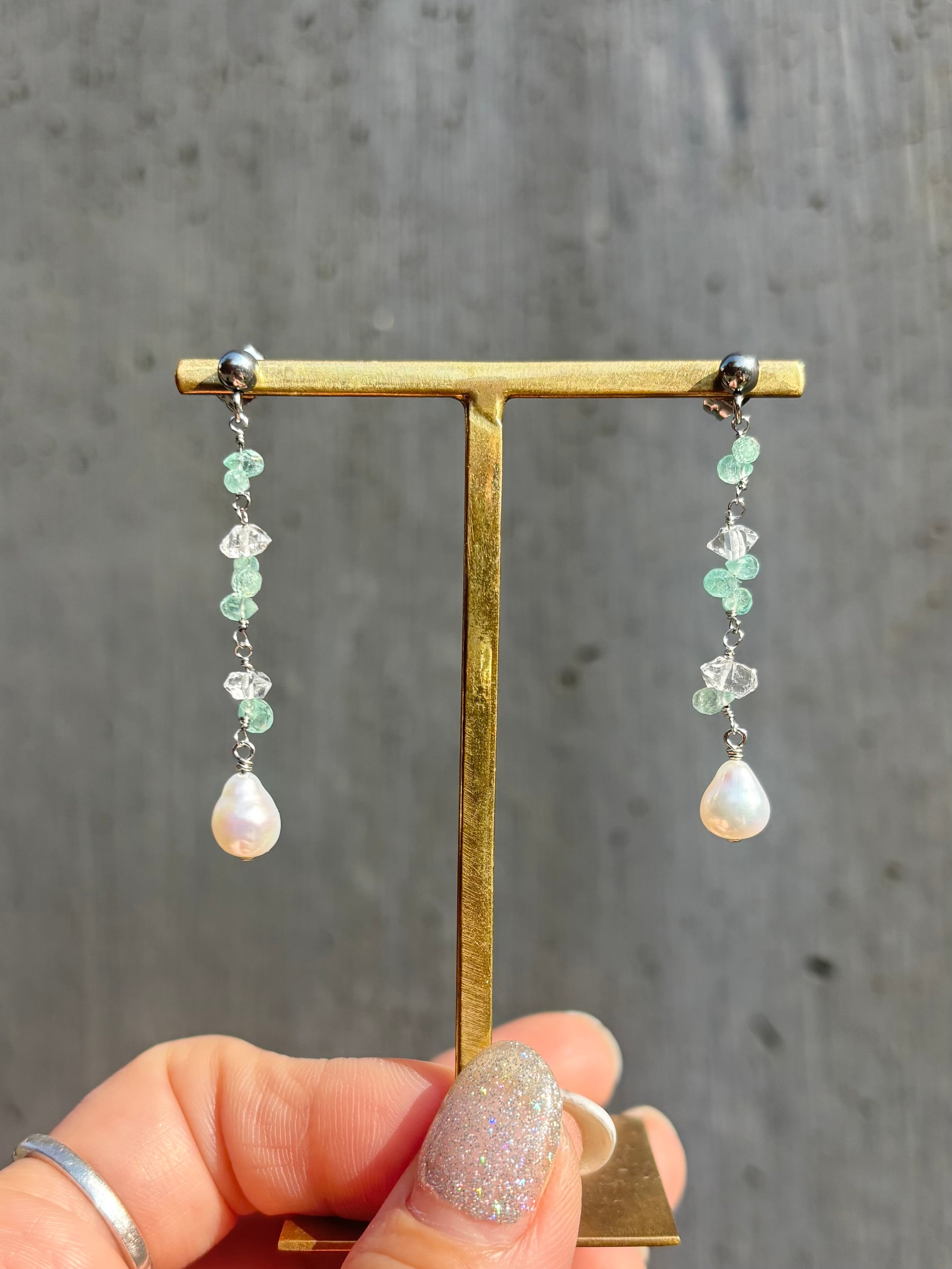 【NEW】宝石質エメラルド×ハーキマーダイヤモンドの揺れるピアスイヤリング