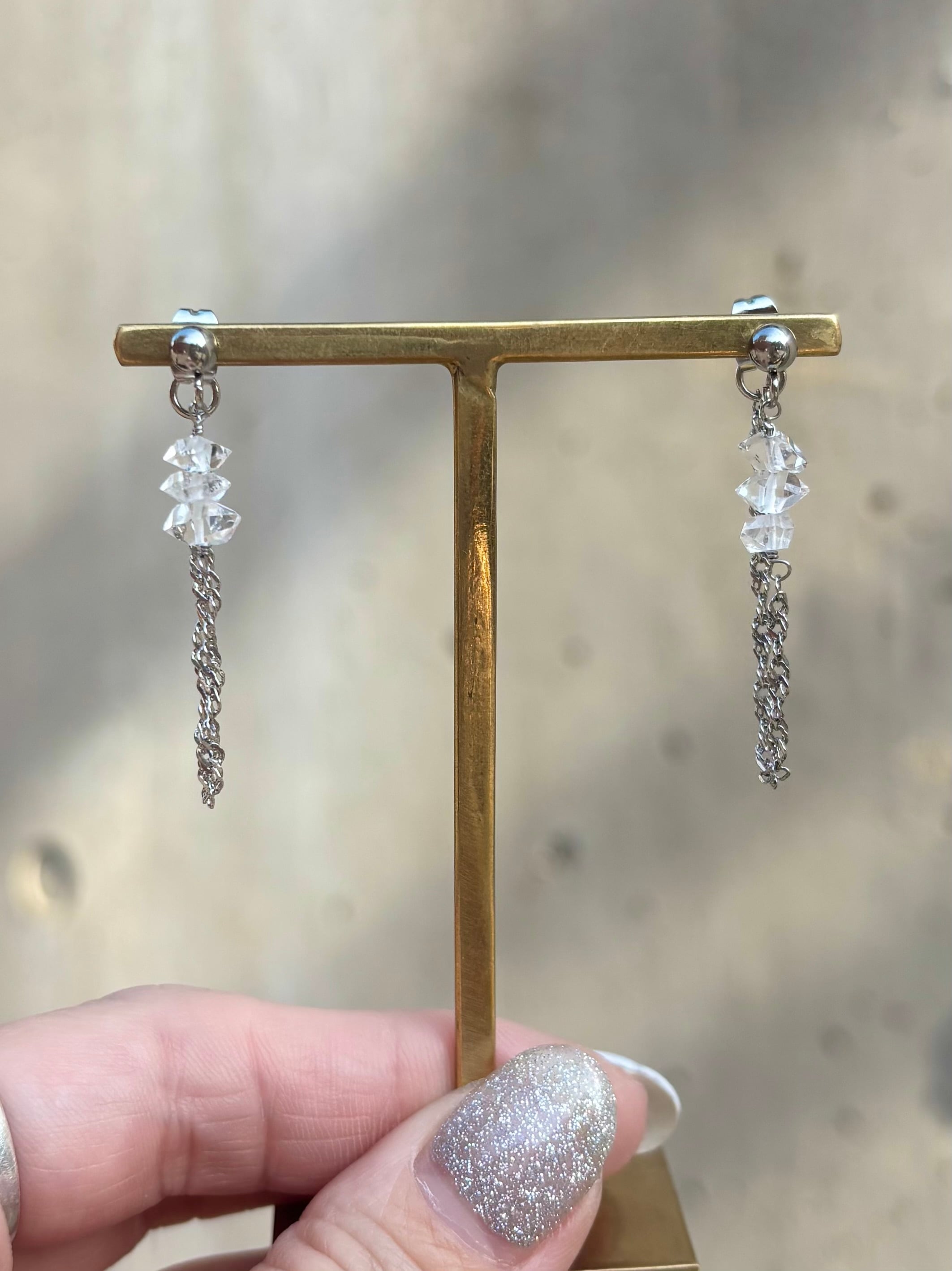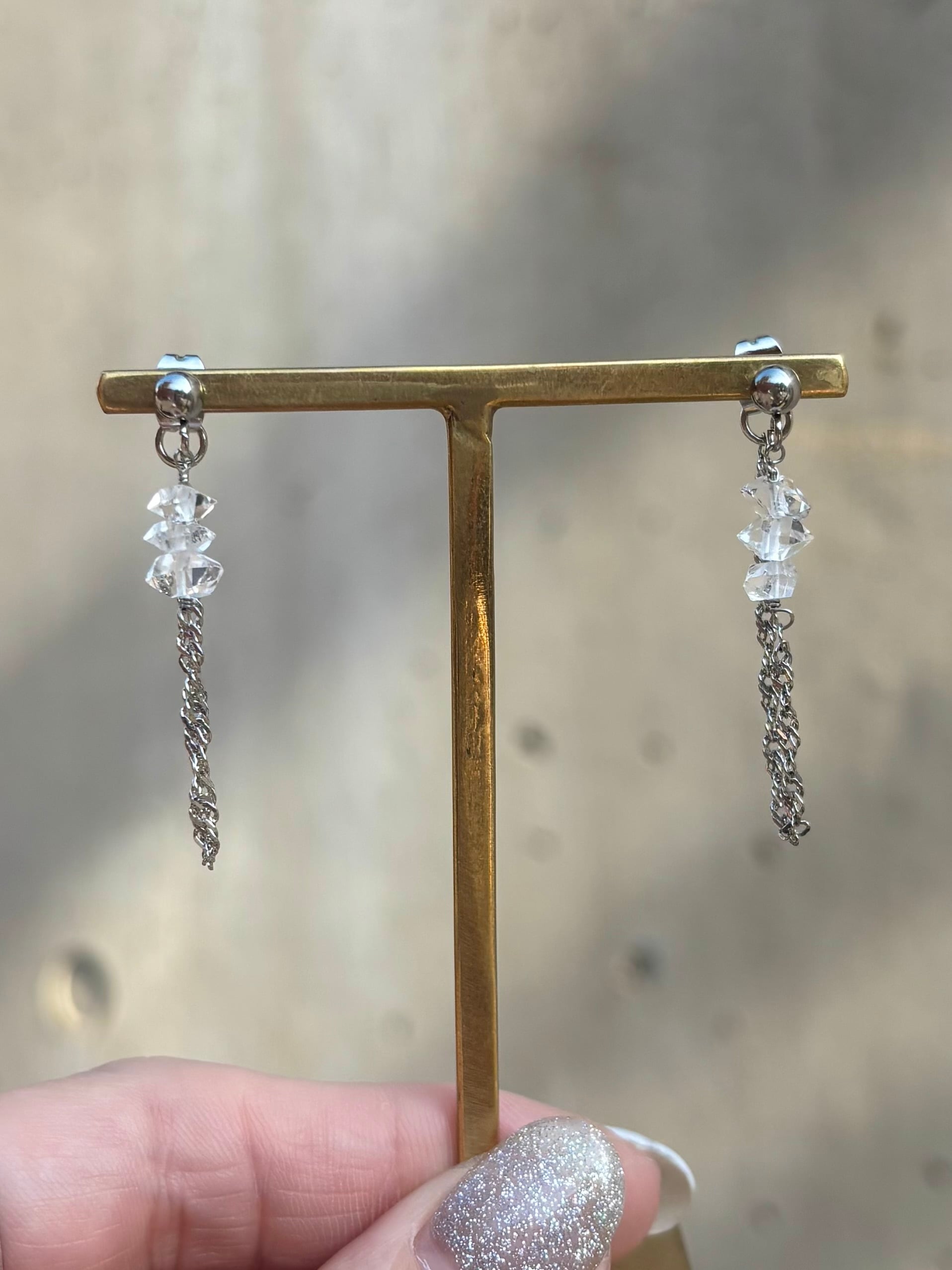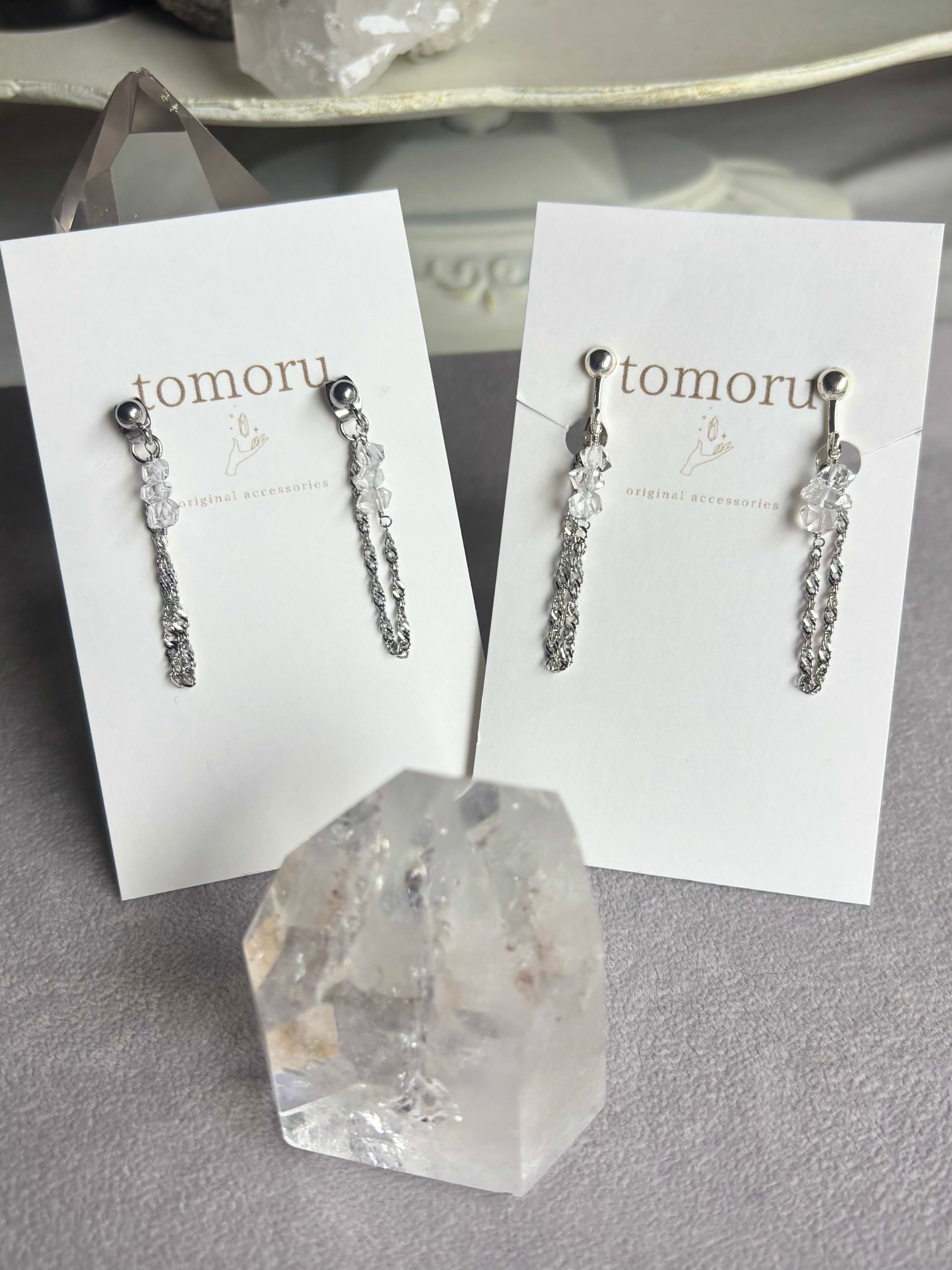 【NEW】ハーキマーダイヤモンドとチェーンのピアスイヤリング