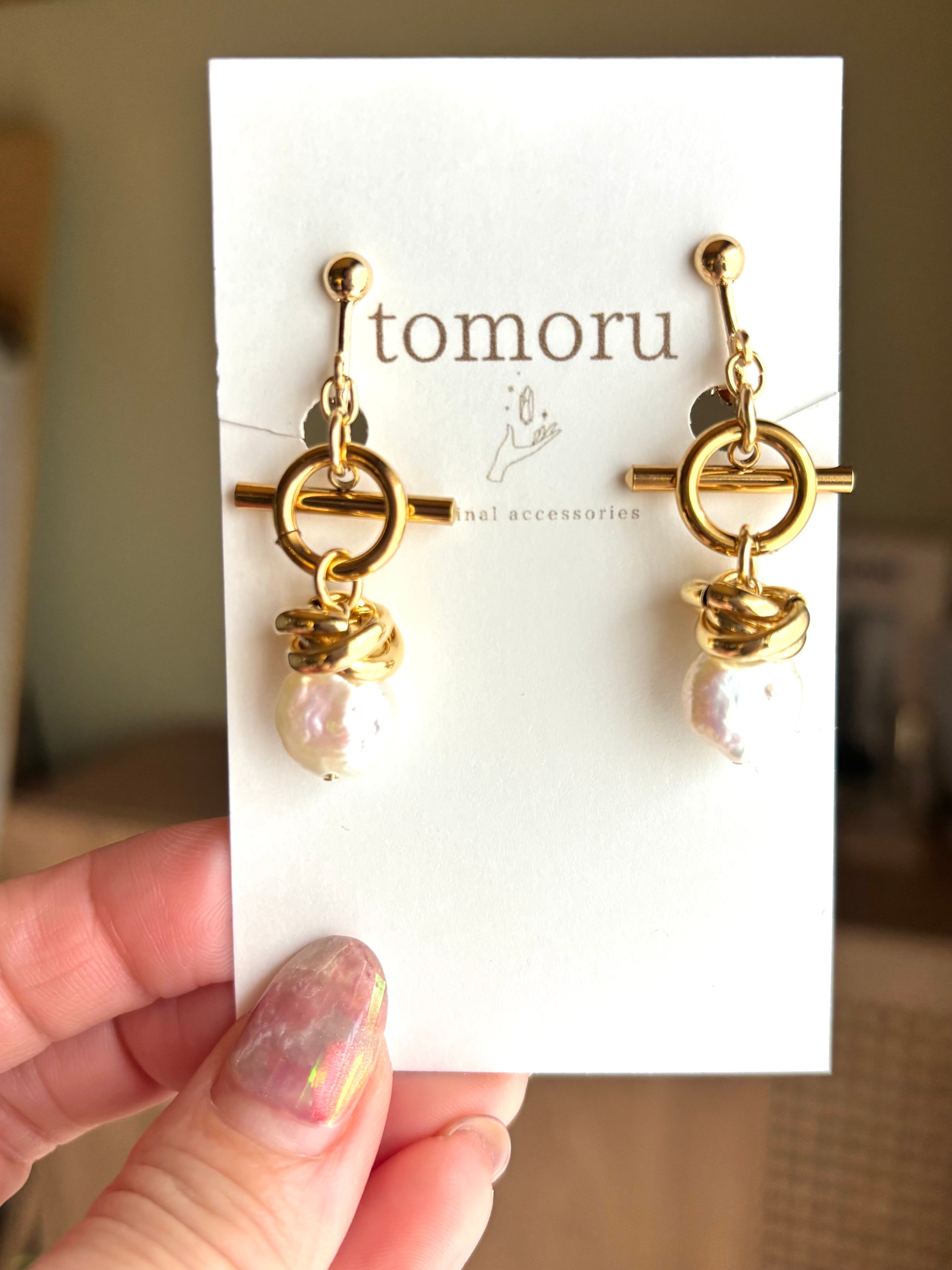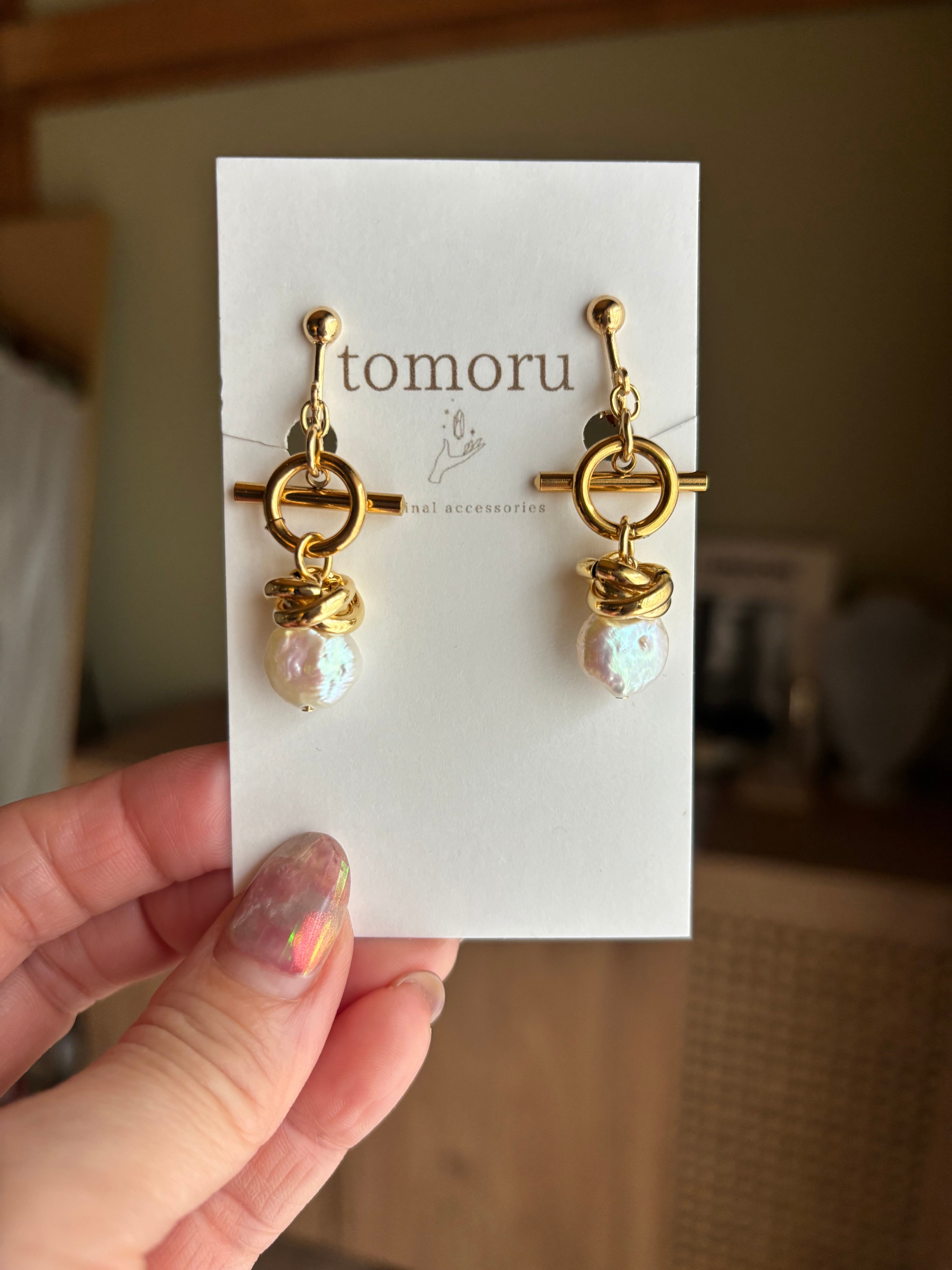 2つのパーツが必ずセットでその役目を果たすことから『運命』という意味をもつマンテルを使ったピアスイヤリング。tomoruの定番人気デザインとなっております。
