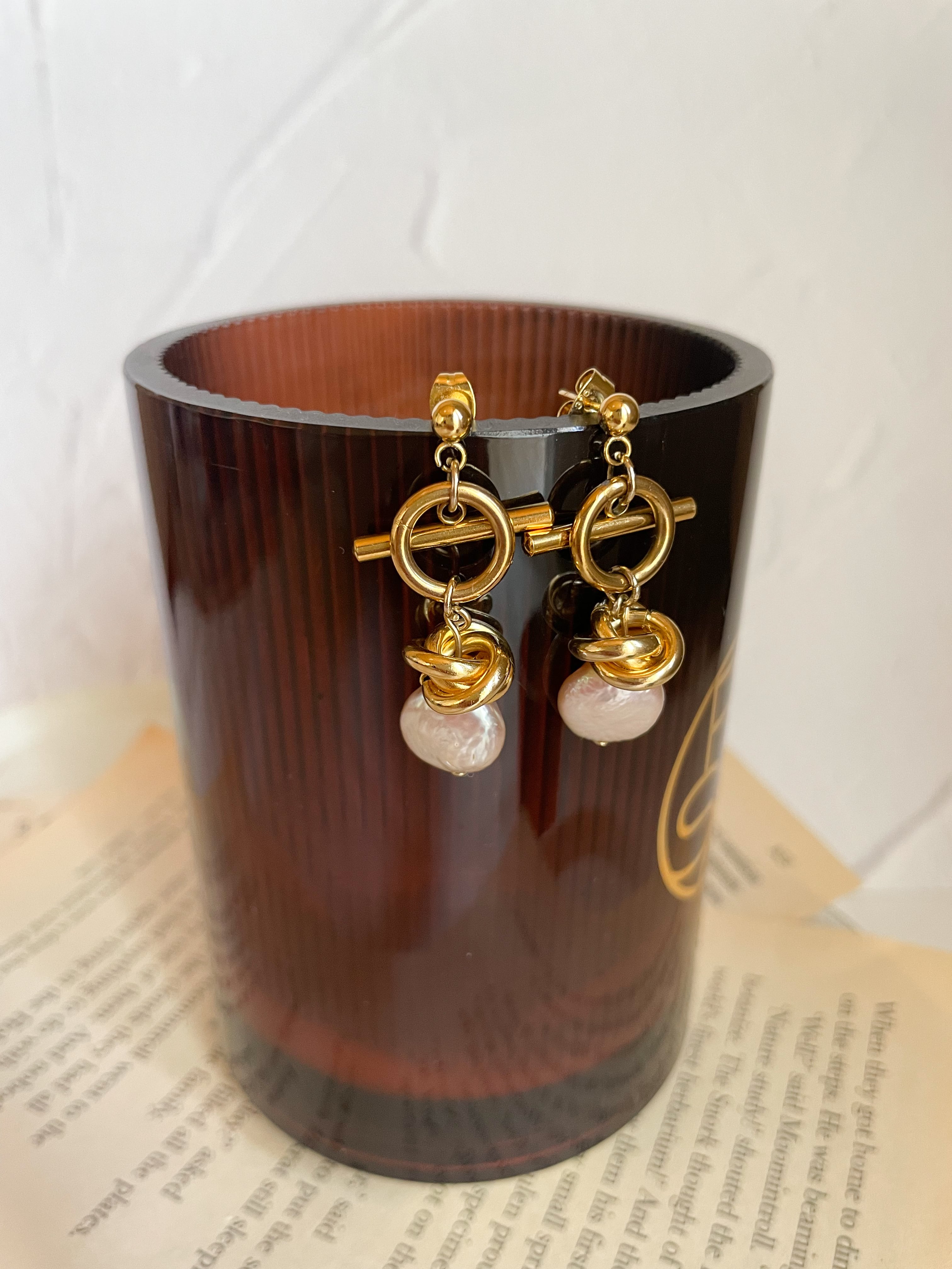 【定番人気デザイン】ゴールドマンテル×淡水パールのピアスイヤリング