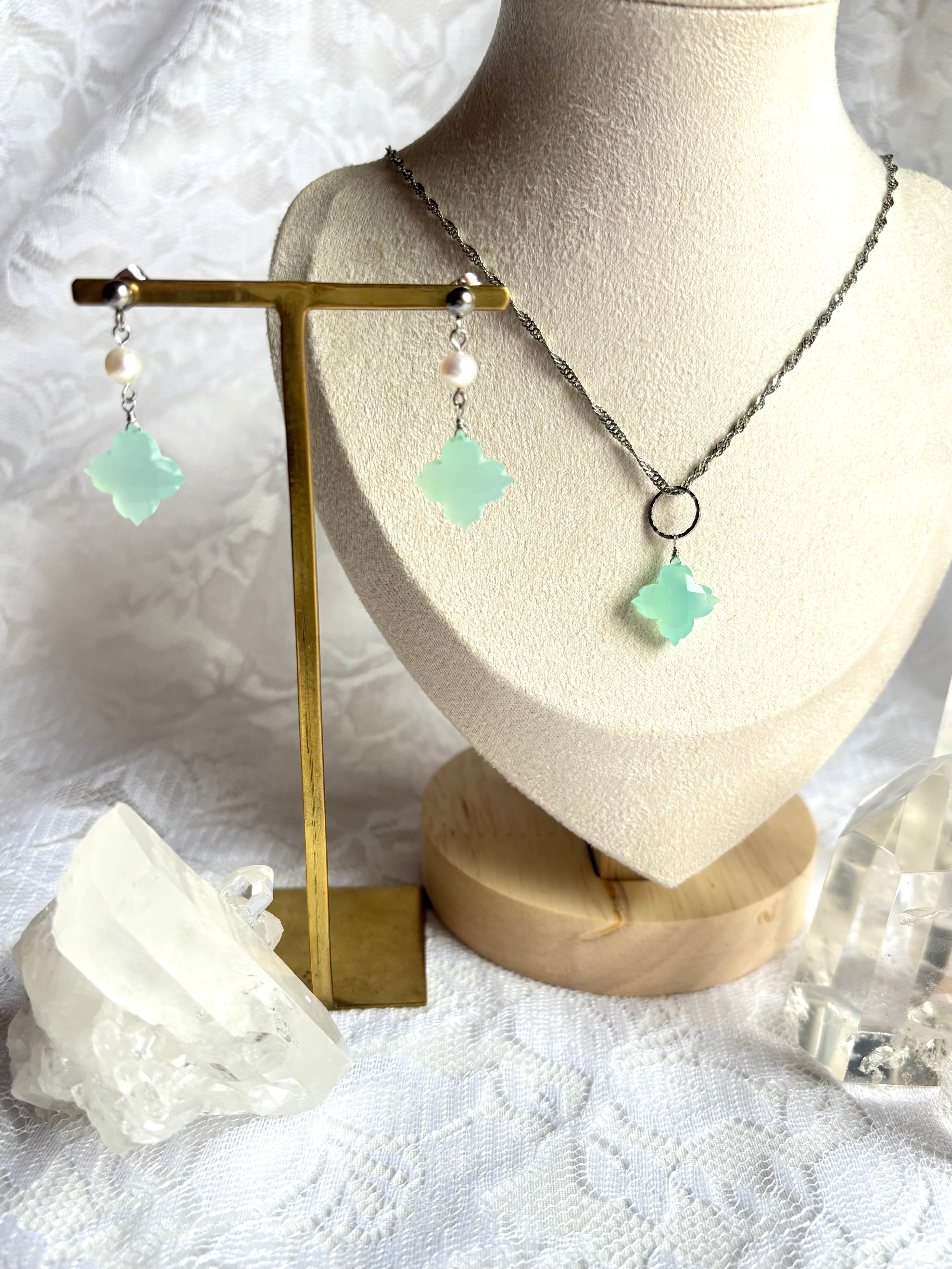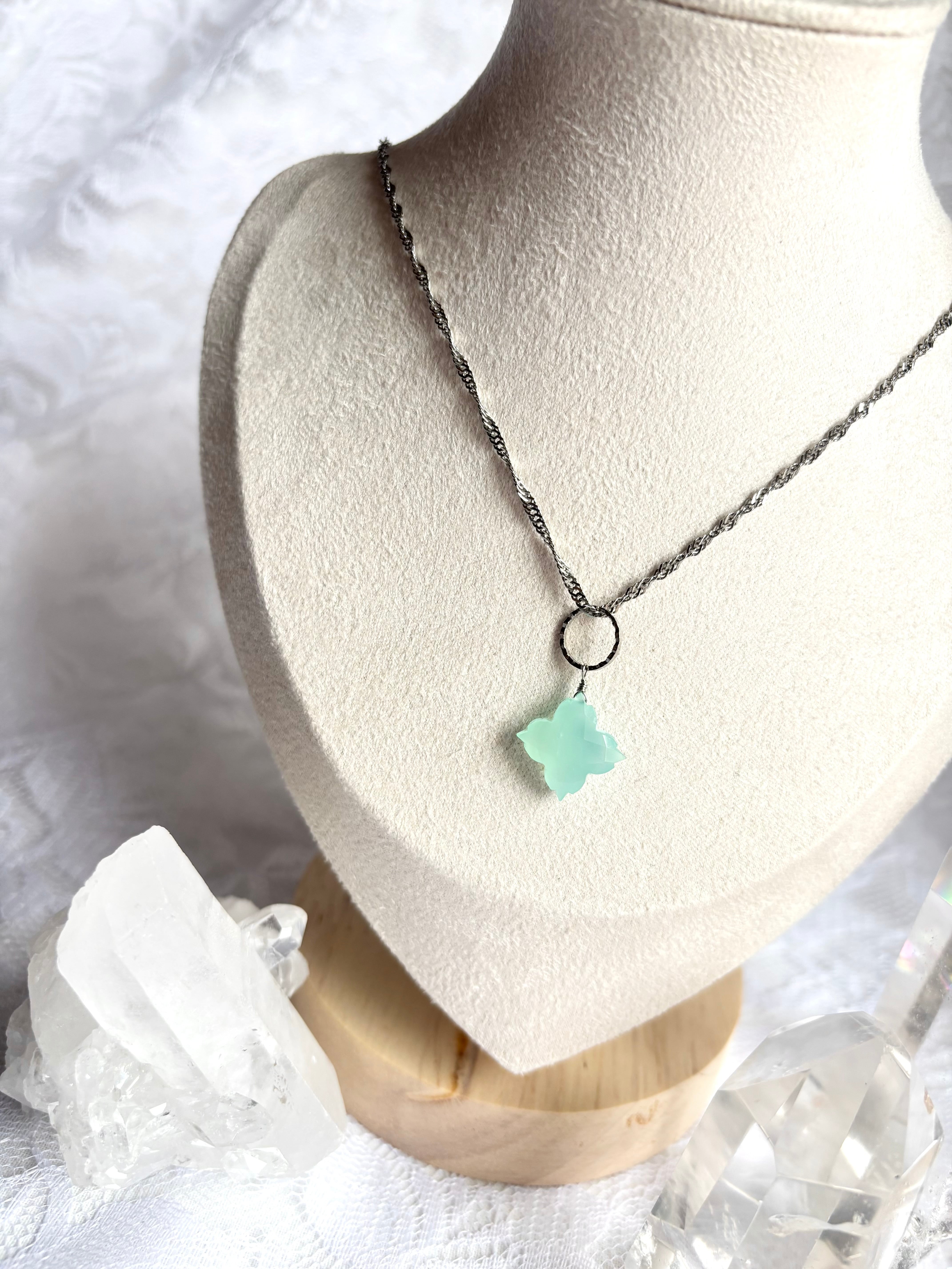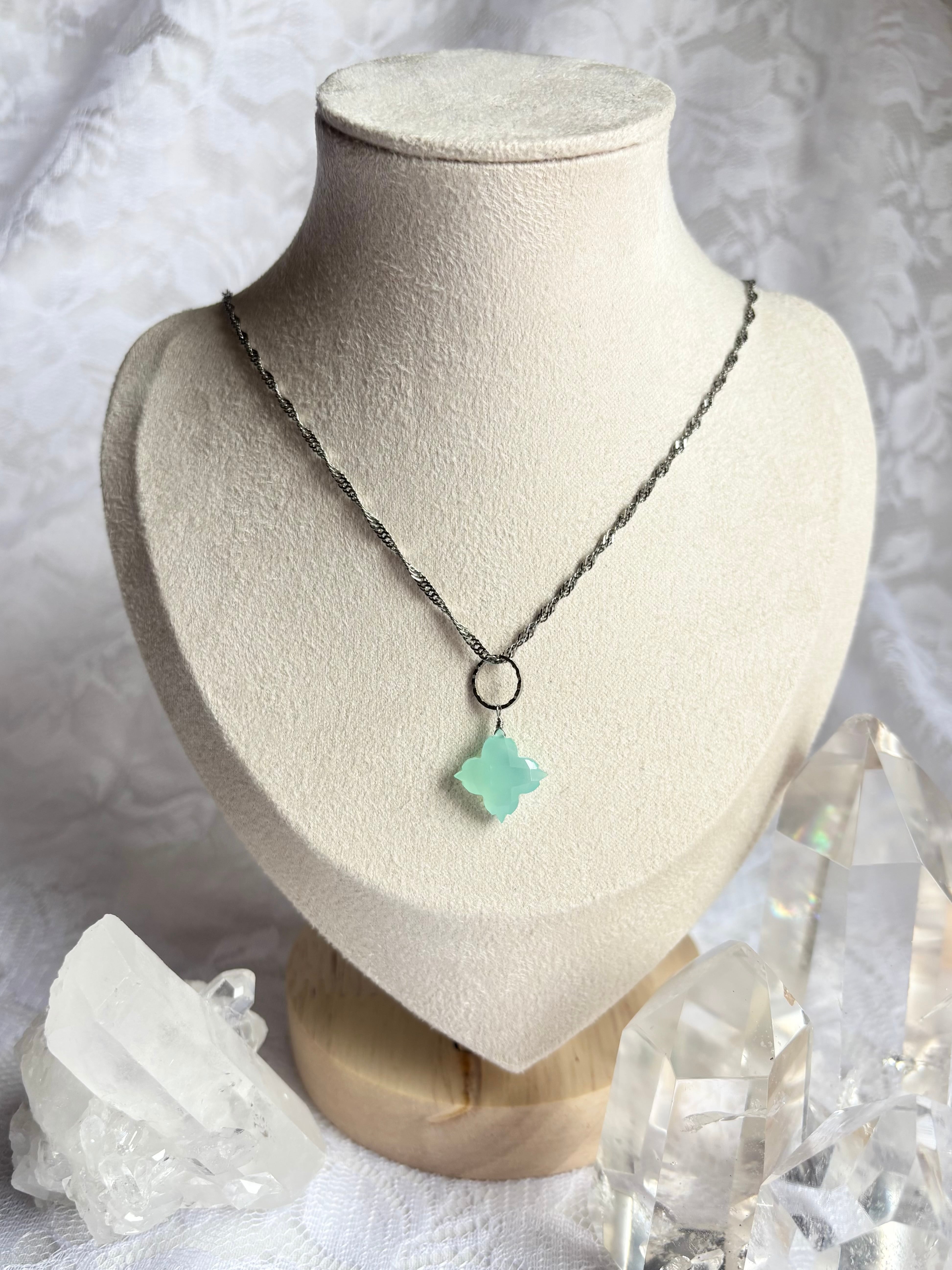涼しげで個性的なカットのシーブルーカルセドニー。シンプルなお洋服にもアクセントになって一気にお洒落な雰囲気になります♡